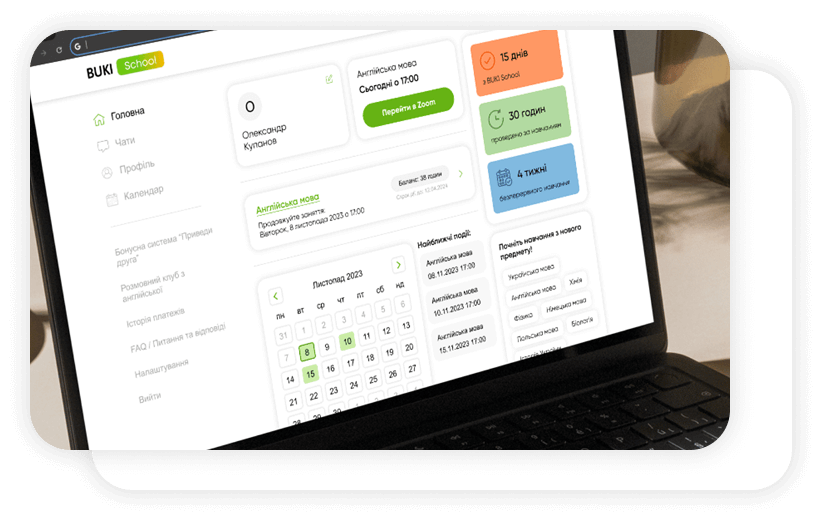 Tot ce ai nevoie într-un singur loc: program, progres, chat cu un profesor și manager, bonusuri și promoții.